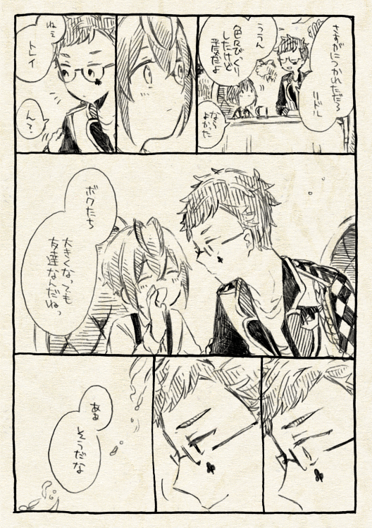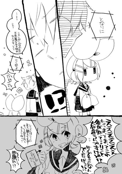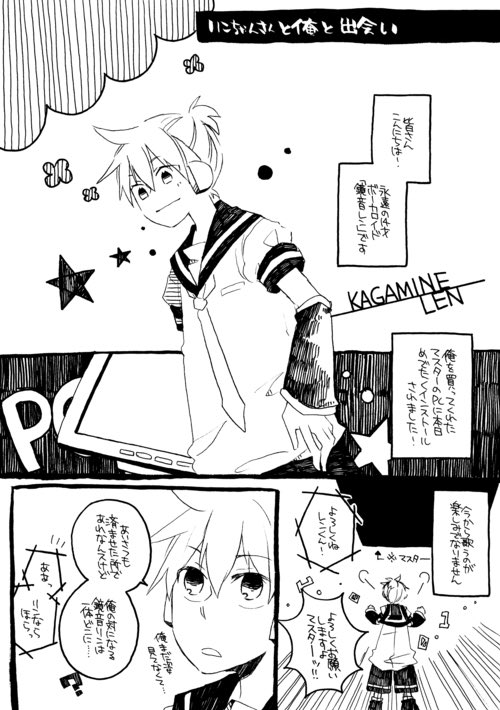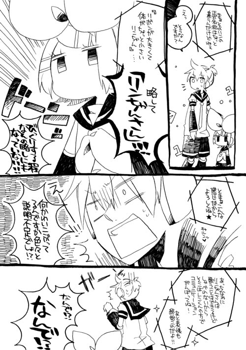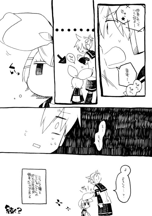 ボカロ絵昨日載せたけど、リンちゃんと俺っていう体は小さくてリボンがでっかく喋らないリンちゃんと普通のレンくんのお話をよく描いてたし今でも気に入っている これは一話目 ※台詞誤字で心を応って書いてる