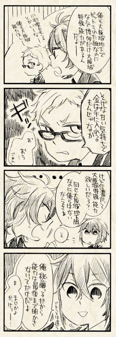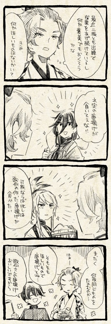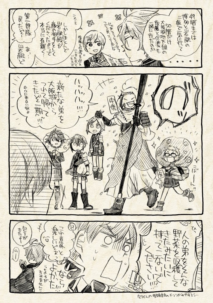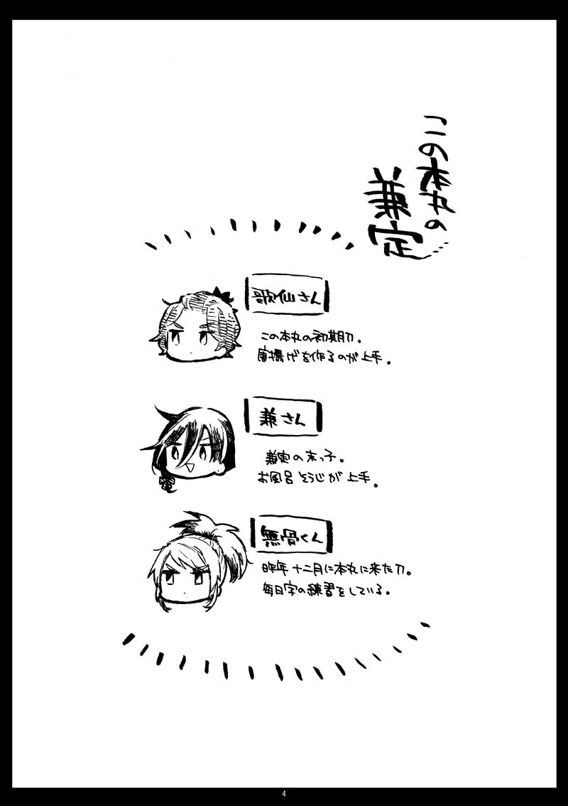5月3日閃華新刊:「今日の兼定」 兼定三振の本丸での日常4コマ本です。 無骨くんが来た12月から3月くらいまでの話。 (1/2)