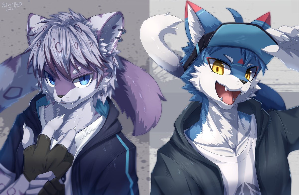 混跡街頭的貓咪二喵組()我喜歡畫這種帥帥且毛茸茸(?)的獸獸☺️