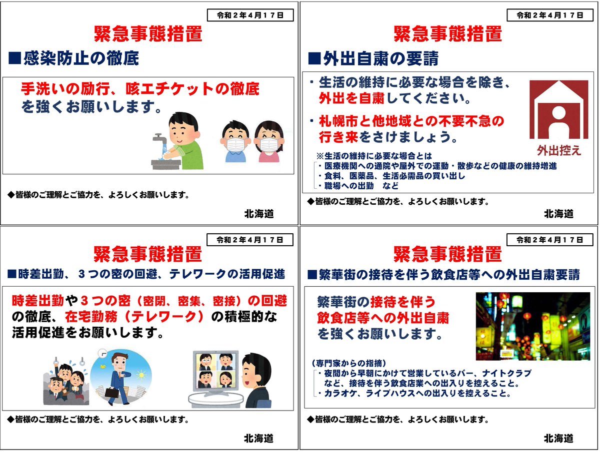 新型コロナウイルスの感染拡大防止のため、道では、本日16時、道内全域の携帯電話ユーザーに外出自粛をお願いするメッセージを配信します。