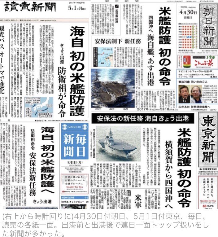 【コラム】「米艦防護」報道への疑問 なぜ連日一面トップ? 正確には「警護」では?(楊井人文)