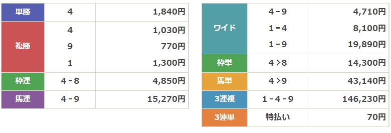 着順、コーナー通過順位などが出ました。