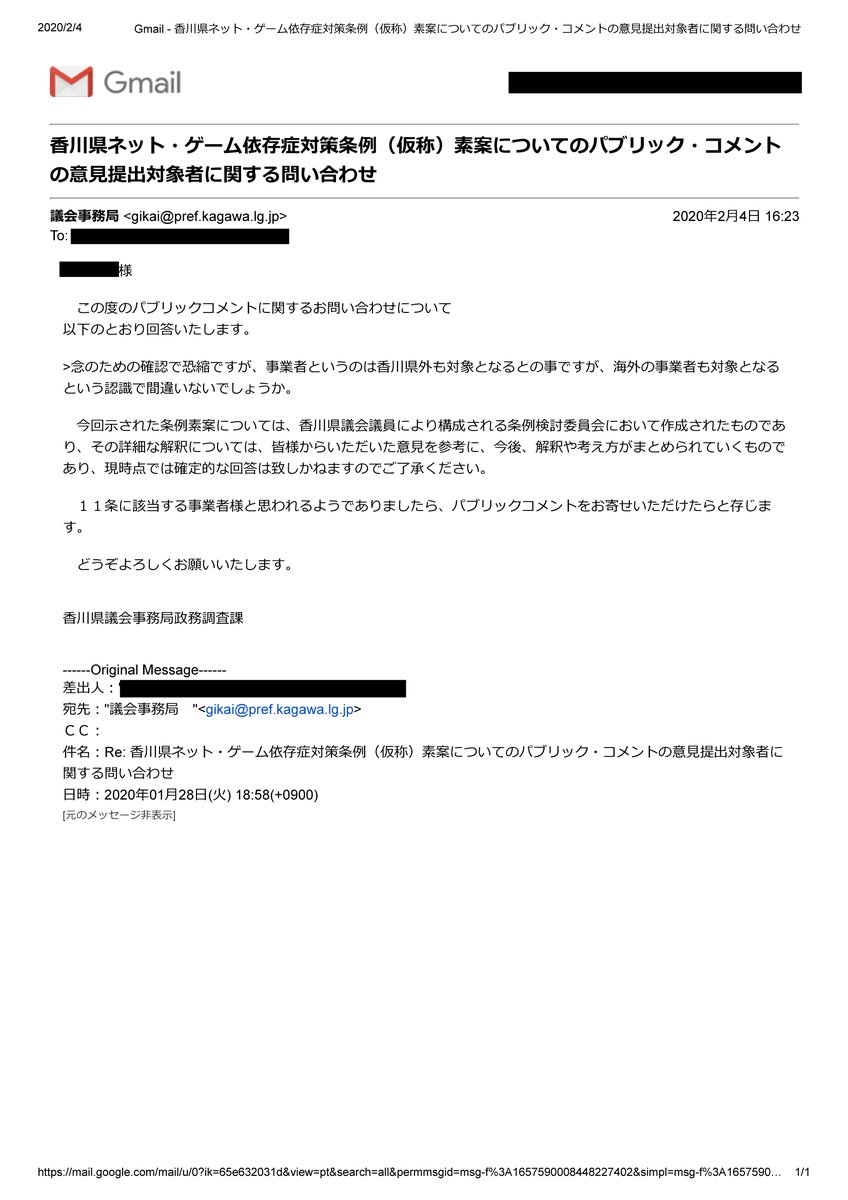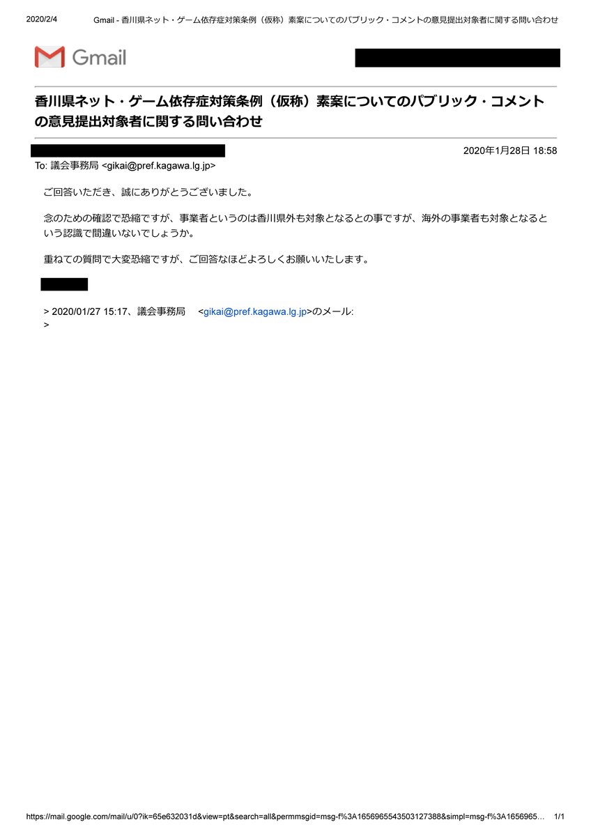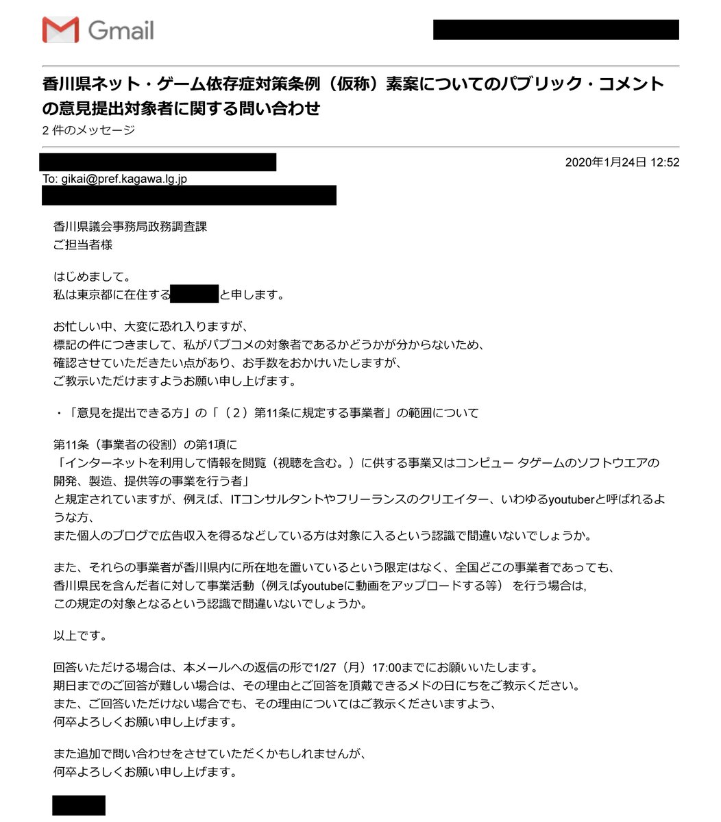 良識ある香川県議がパブコメの情報開示を求め、