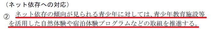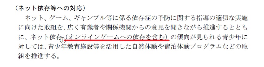 ①大綱案の後段「ネット依存(オンラインゲームへの依存を含む)~」の括弧内の文言は有識者による検討過程で追加されたもの。