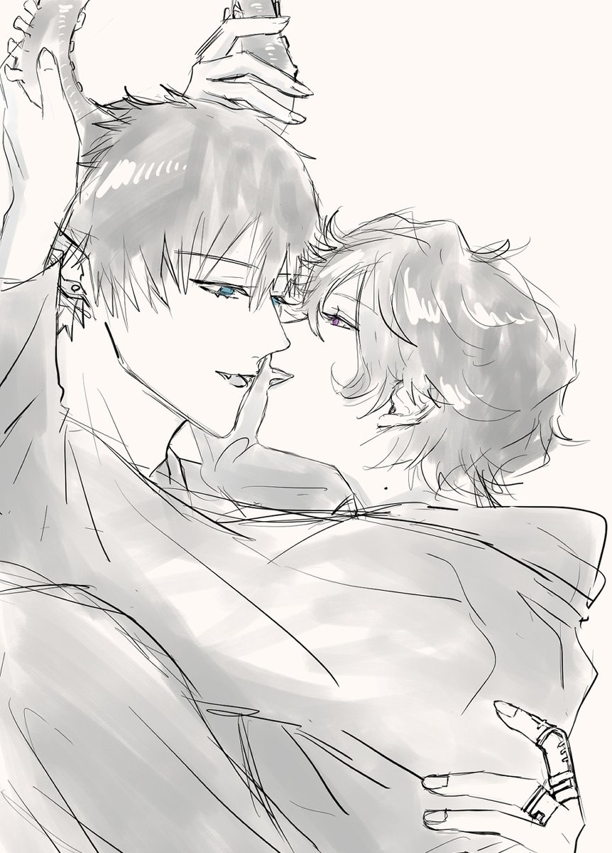 先にこれ描いてて🧜、いい感じに横顔描けたなと思ってそのままちょっと変えて描いたさっきのやつ