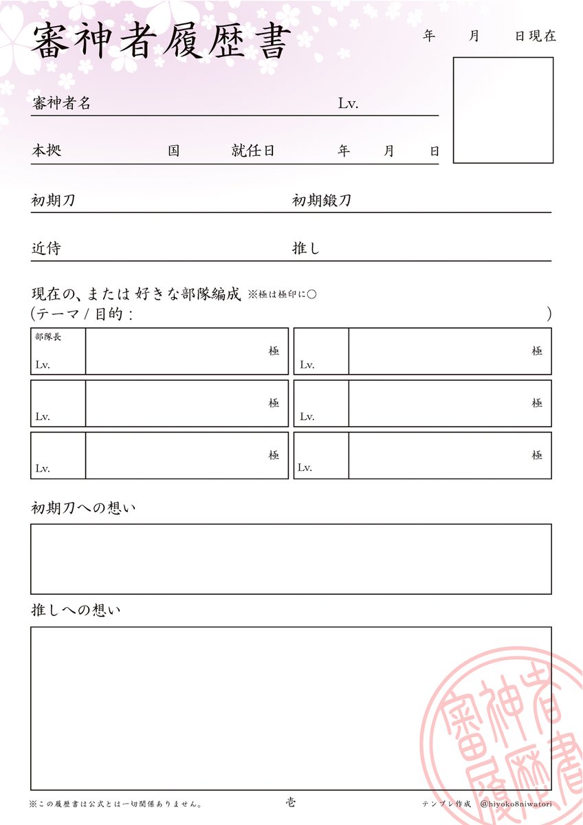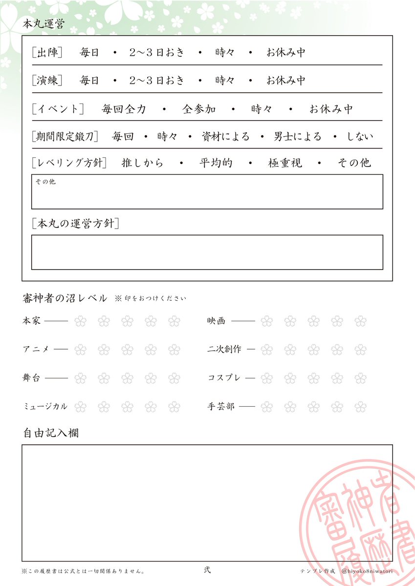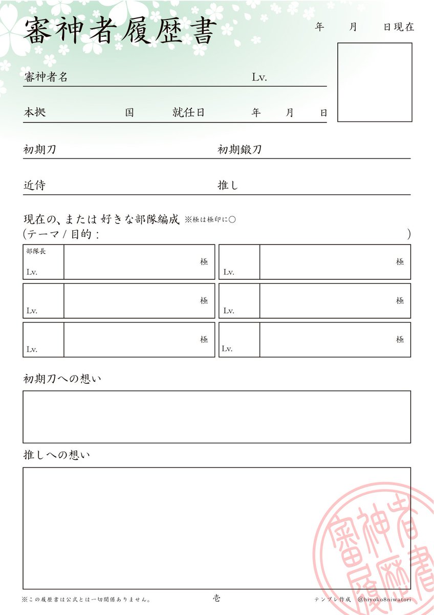 審神者履歴書テンプレート更新しました☆