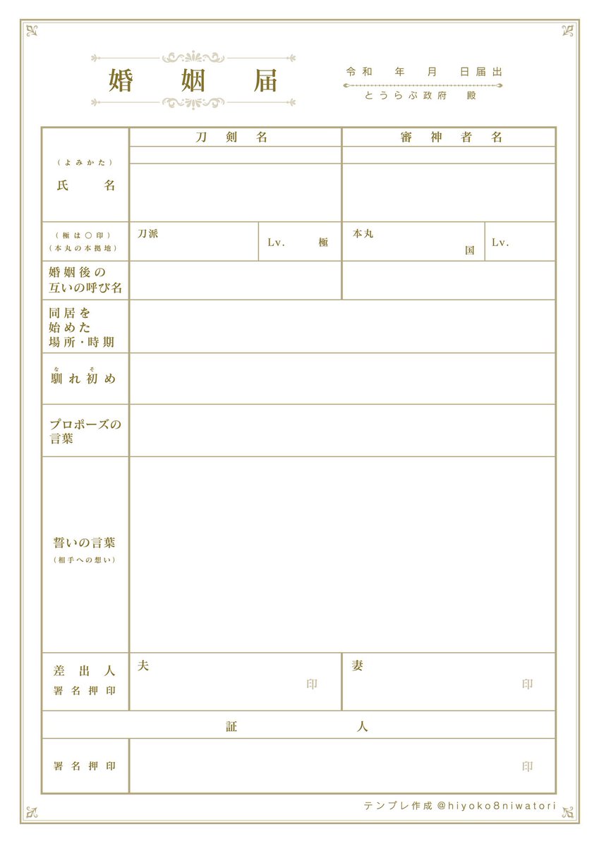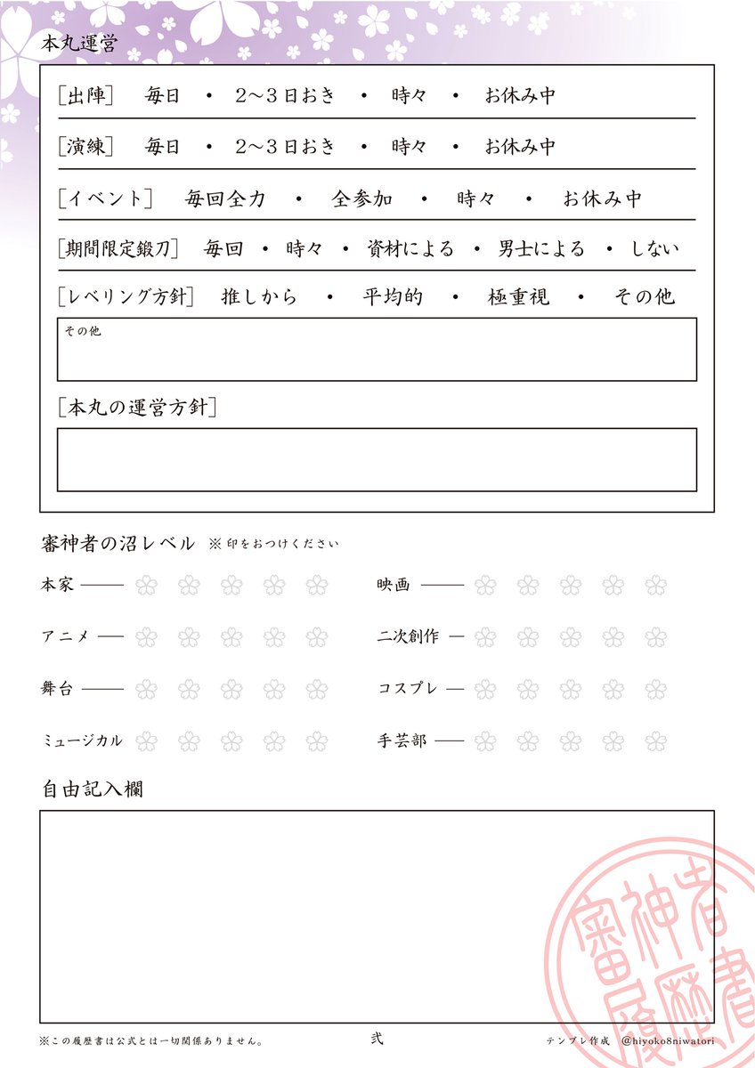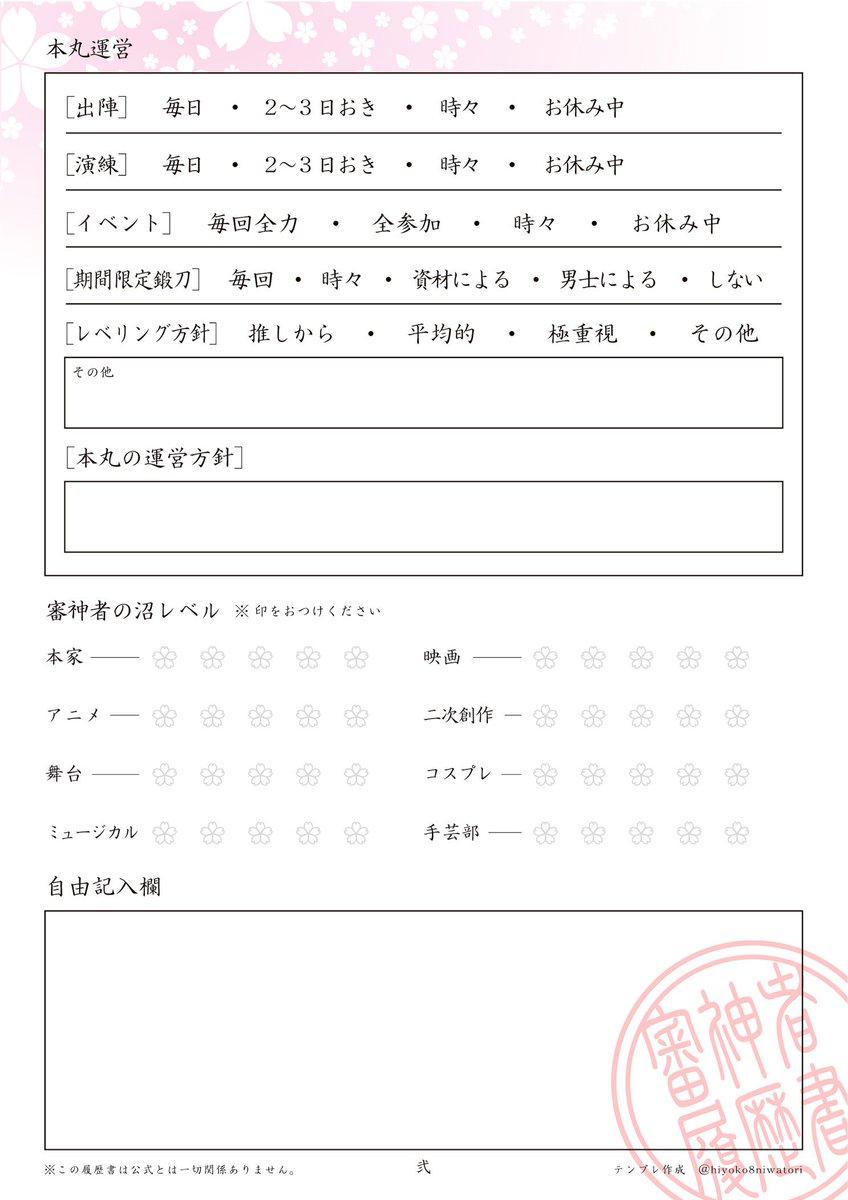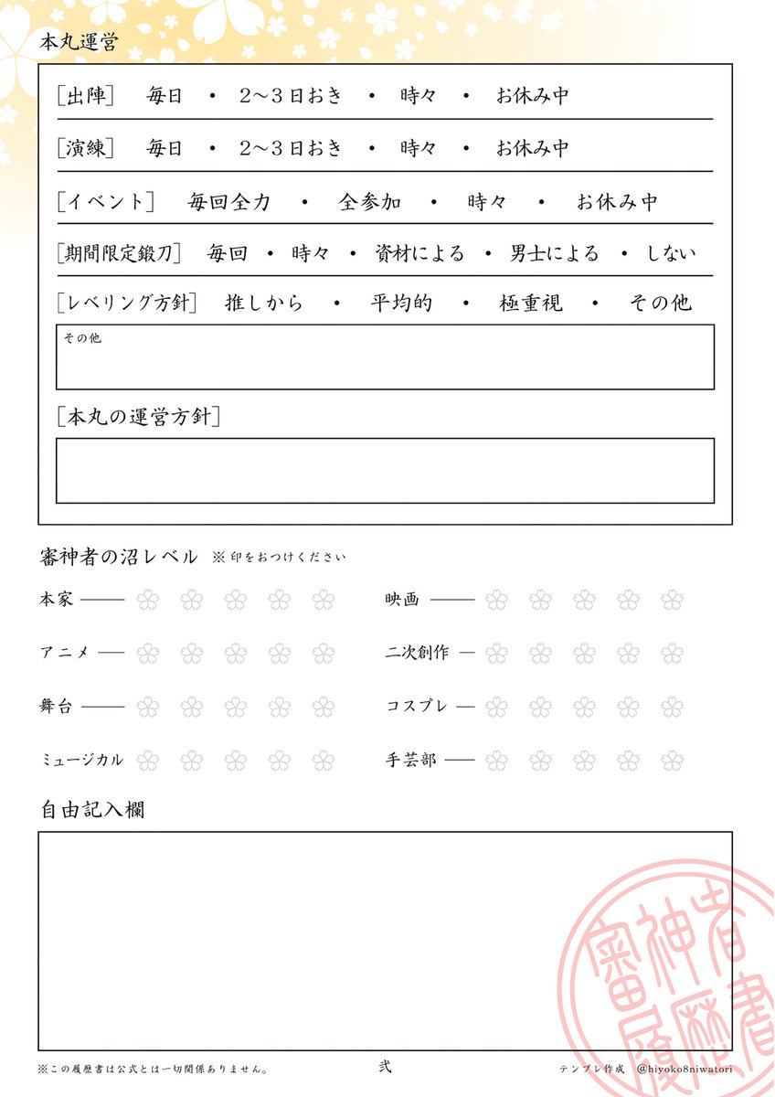 審神者履歴書テンプレート更新しました☆