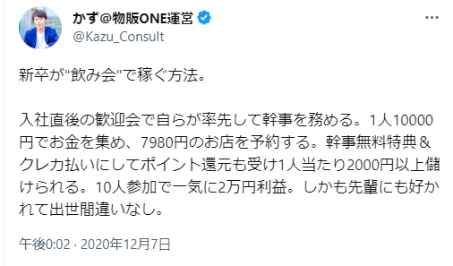 「合コンで3850円のコースを予約して4000円集金する幹事」が話題になっていますね。