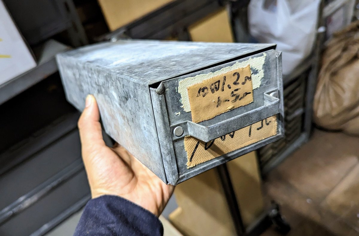 ラジオデパートの桜屋さんの倉庫の整理を手伝ってたら、大量のブリキケースを発見!かっこいい!