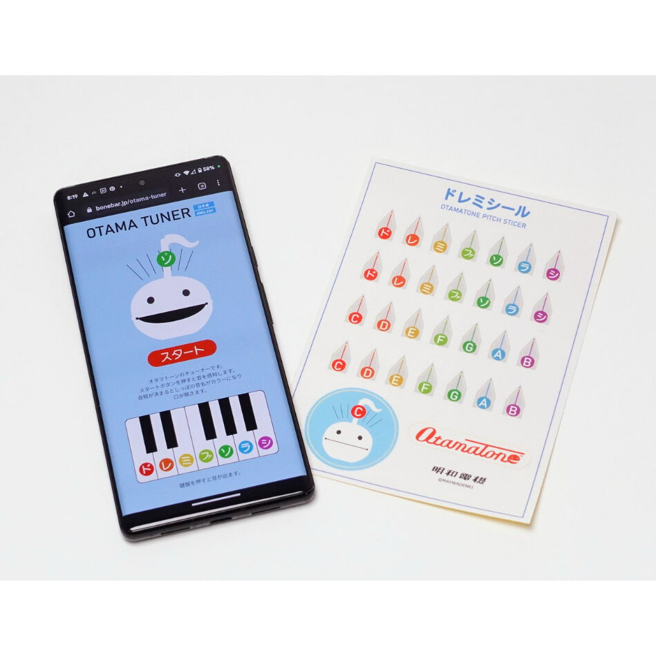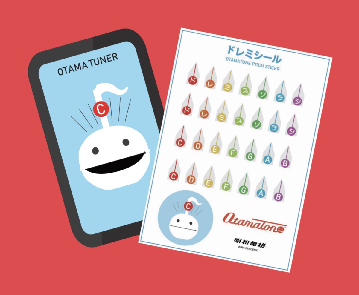 オタマトーンは「オンチ」なしくみだからおもしろい。でも曲を演奏するには「オンチ」ではこまる。なので音程を調べる「オタマチューナー」と音程を印の「ドレミシール」を作りました。… twitter.com/i/web/status/1…