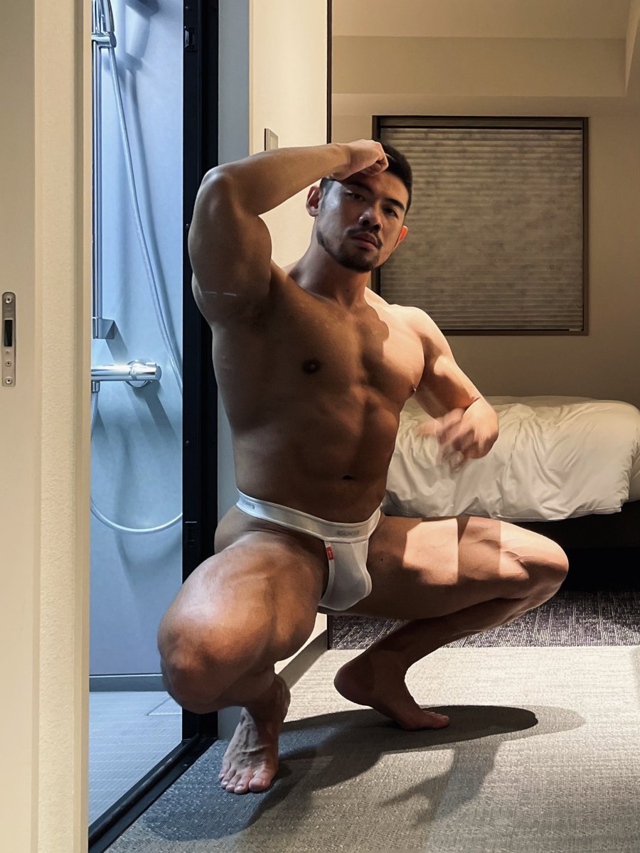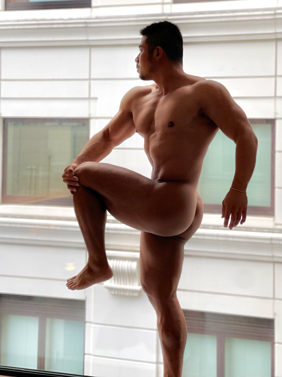 なにげに辛い全裸ポーズ。よく見たらめっちゃ汗だくに💦