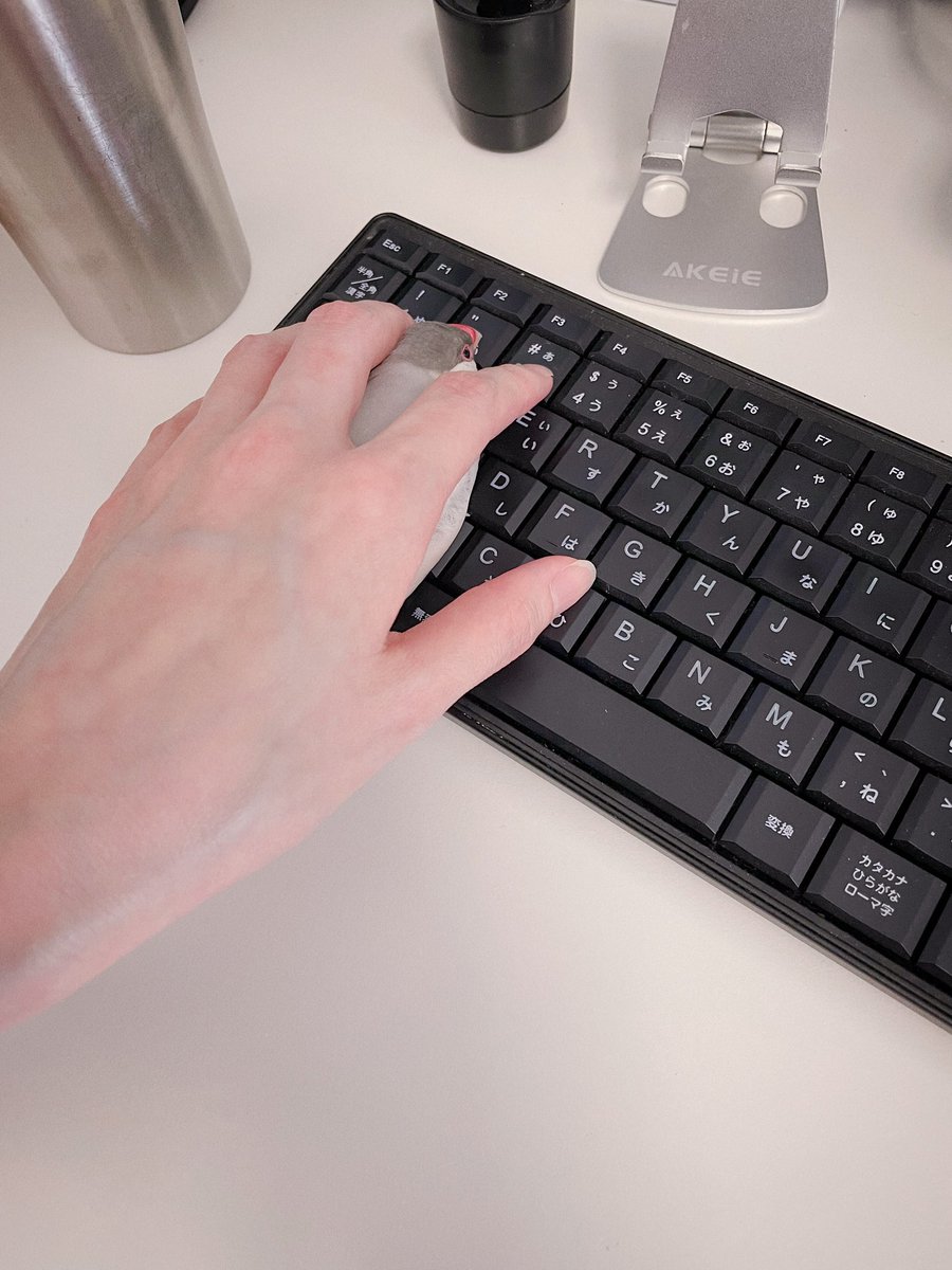 文鳥、キーボード触った瞬間潜り込んできて笑ってしまった(そのまま寝る勢い
