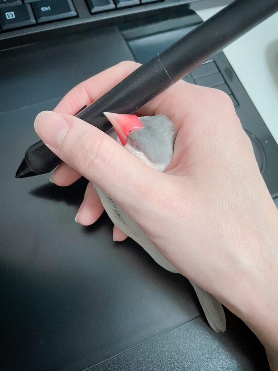 作業集中と文鳥爆睡によりこの状態で1時間経過することとかある