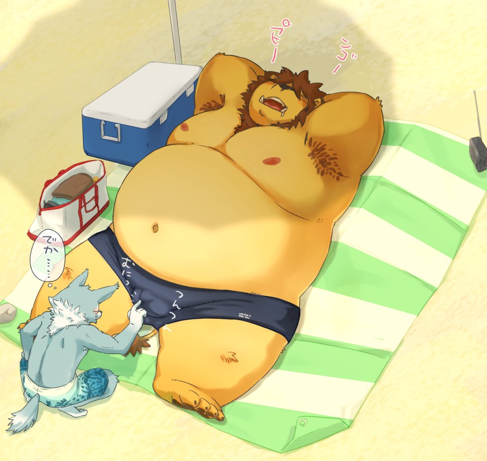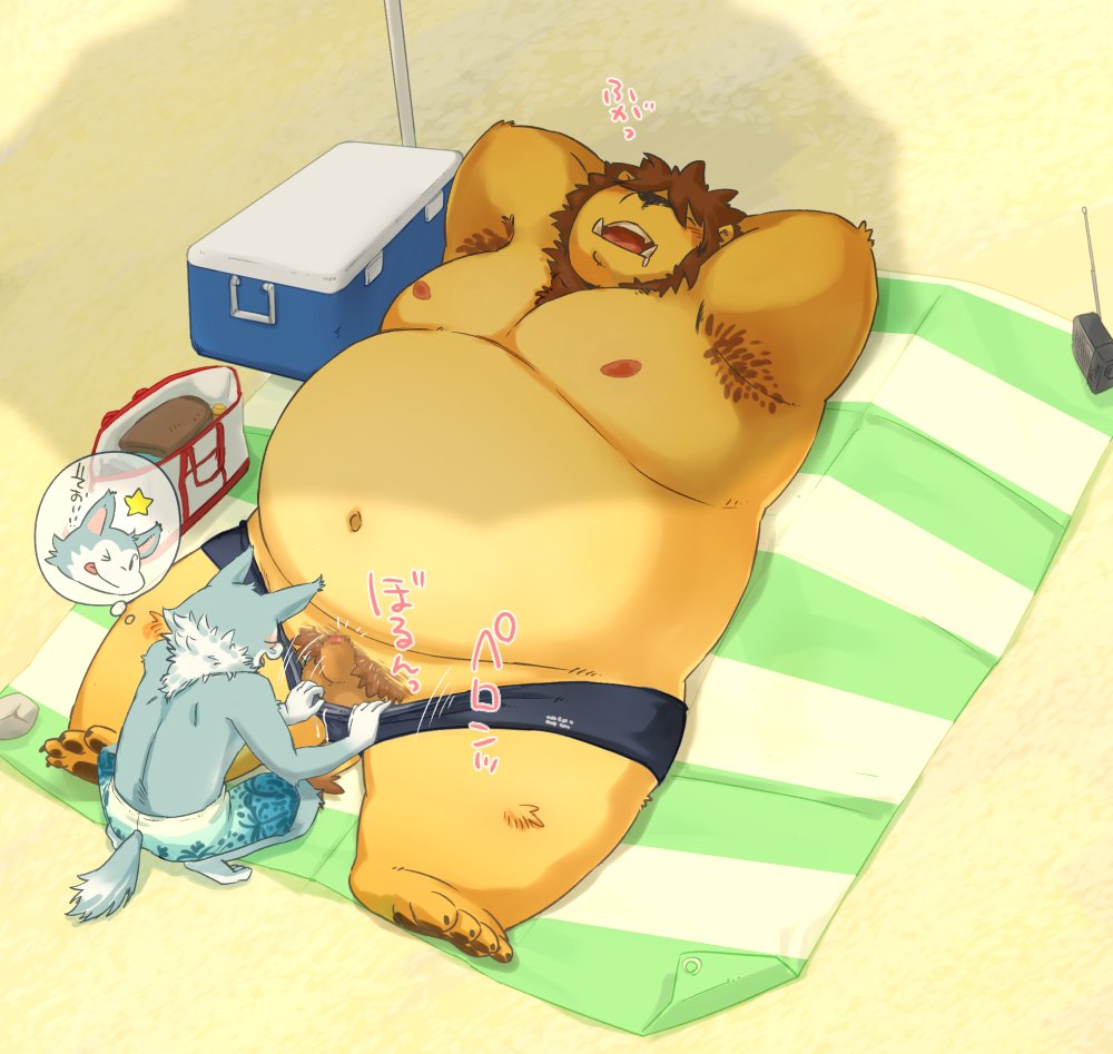全然人がこない超穴場のビーチに二人で遊びに来て一泳ぎして昼寝中に暇を持て余したオオカミくんの悪ノリ