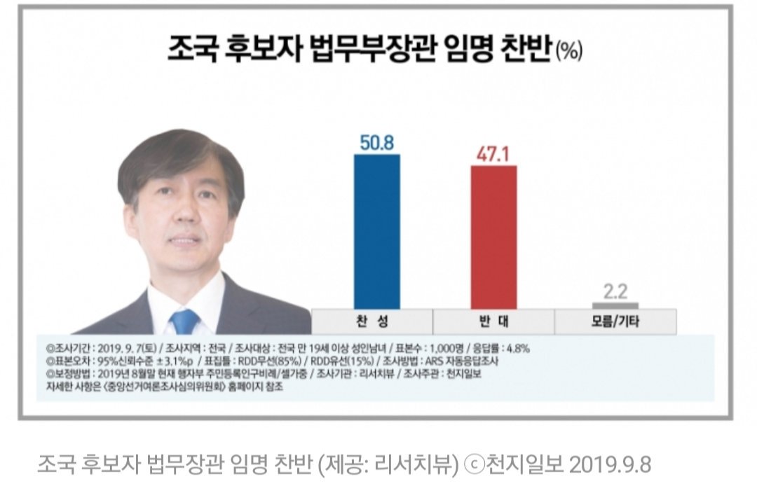 [조국 후보 여론조사] - 임명 찬성 상승중