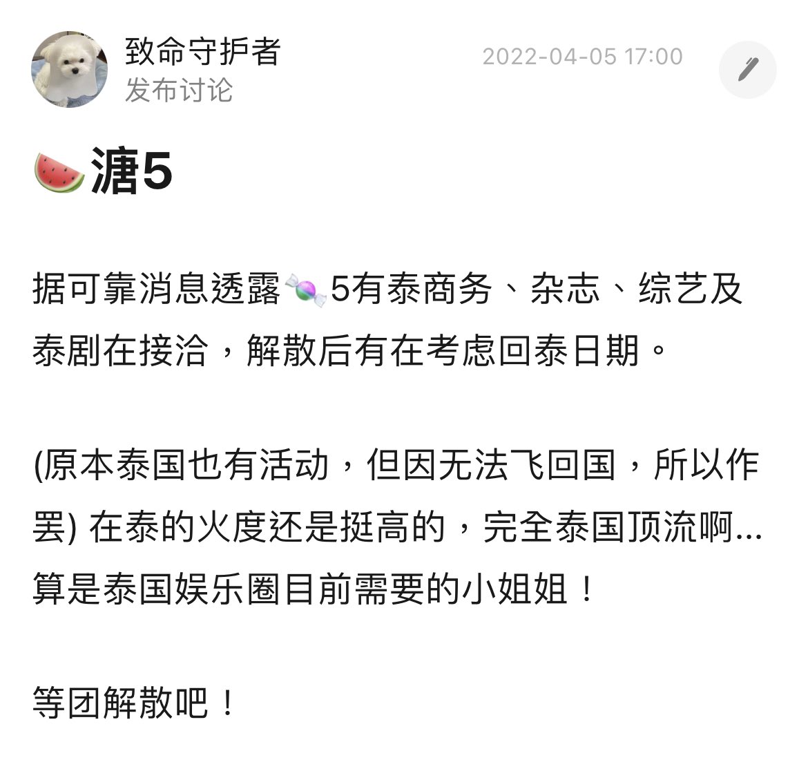 จากแหล่งข่าวที่เชื่อถือได้ 5 มีงานโฆษณา นตย วรต ซีรี่ย์ ติดต่อมาจากไทย หลังยุบวงมีวางแผนวันที่กลับไทย