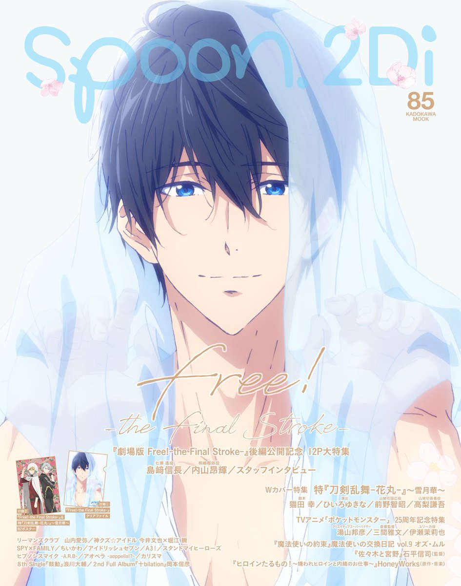 『劇場版 Free!-the Final Stroke-』特集には、監督・河浪栄作さんを始め、七瀬遙役・島﨑信長さん、橘真琴役・鈴木達央さん、葉月渚役・代永翼さん、竜ヶ崎怜役・平川大輔さん、桐嶋郁弥役・内山昂輝さんのインタビューが掲載! 制作秘話が満載です🐬 さらに…… #Free_Final 【spoon.2Di 86 5/31】