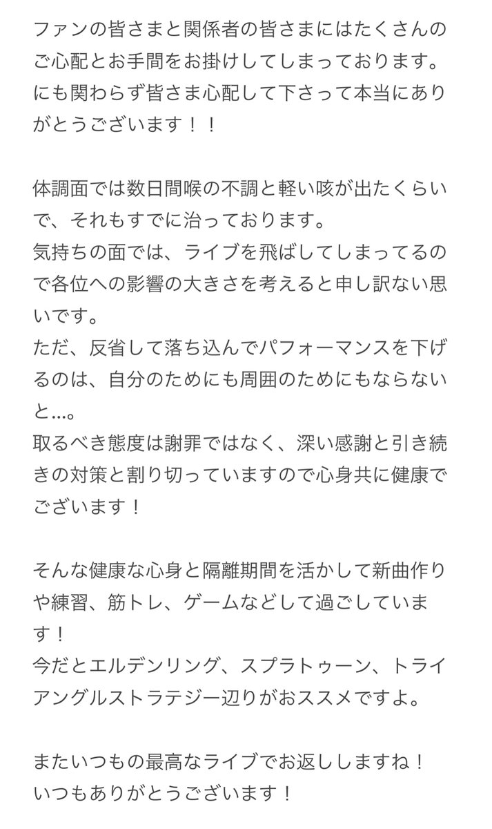 明日(4月23日)、開催を予定しておりました「fun time HOLIDAY 8」日比谷野外大音楽堂公演は、メンバー鈴木貴雄(Drums)、ならびに主要スタッフ2名が新型コロナウイルス陽性の検査結果が検出されたため、開催を見合わせさせていただくこととなりました。