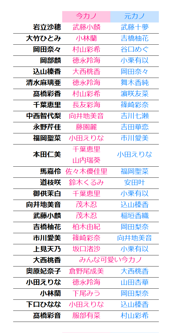 今カノ元カノ総選挙(何?)、好きすぎる。相関図は諦めました。