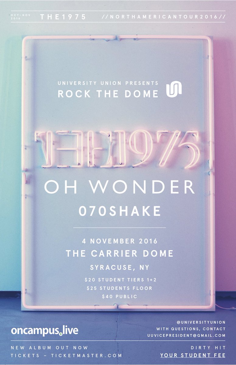 // S Y R A C U S E T I C K E T S O N S A L E N O W // the1975.com/live L O V E
