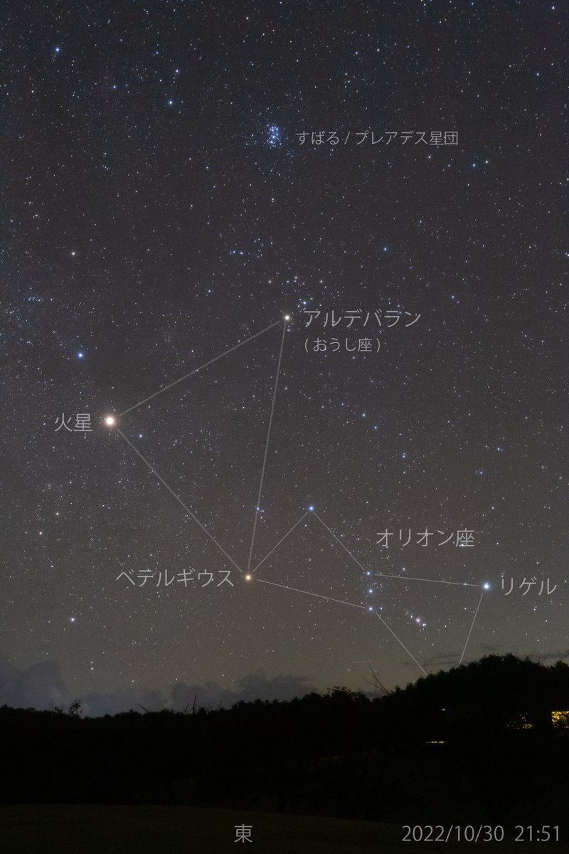東の空からオリオン座などの冬の星座たちが昇ってきました。