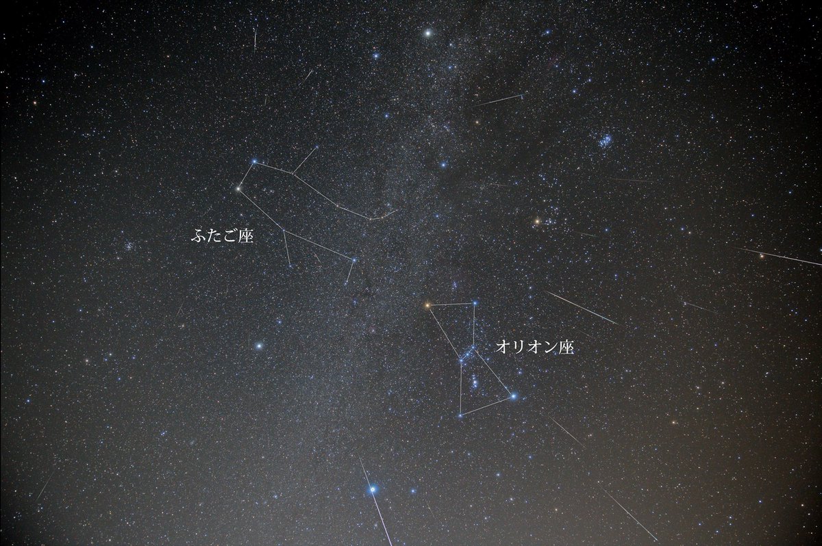 左下から右上に通過する光がISSです。