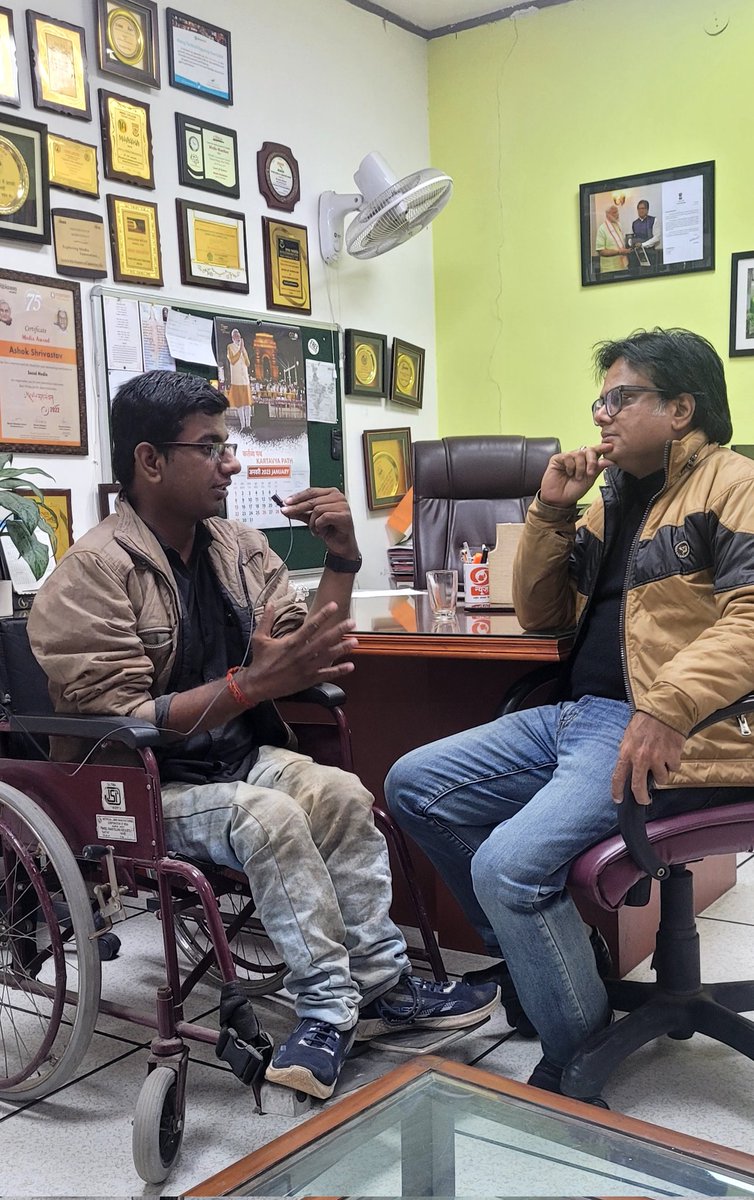 आज एक साहसी और उत्साही युवा @Breaking_Amar से मुलाकात हुई। अमर 20 किलोमीटर दूर से हाथ से ट्राईसाइकिल चला कर मेरा इंटरव्यू लेने आए, जल्द ही उनके यूट्यूब चैनल पर आप वो इंटरव्यू देख पाएंगे।