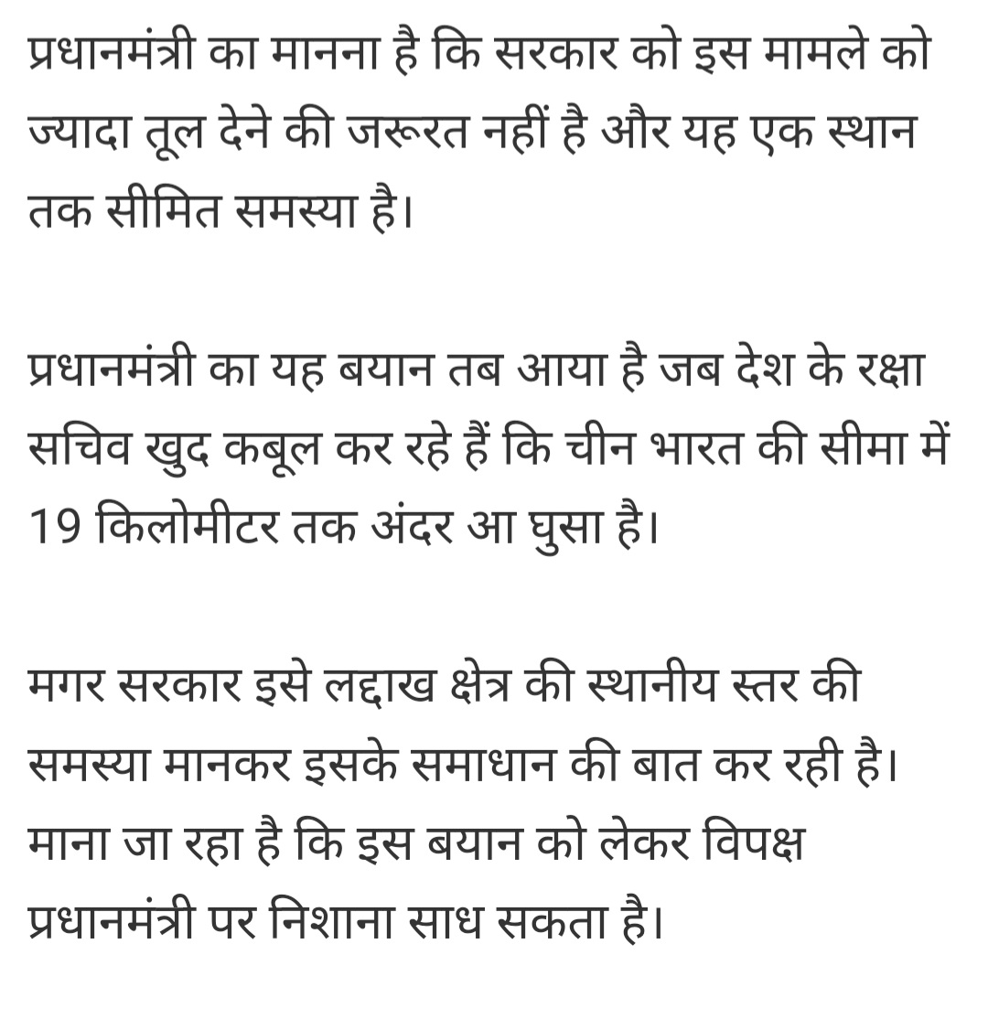 #Tawang_clash में भारतीय सेना ने चीनी सैनिकों को पीटकर भगा दिया फिर भी इस पर राजनीति हो रही है। कांग्रेस कह रही है कि प्रधानमंत्री चीन का नाम लेने में डरते हैं। पर जब कांग्रेस के शासन काल में चीन भारत की सीमा में 19 किमी अंदर आ गया था तब पीएम ने कहा लोकल मामला है, इसे तूल मत दो।