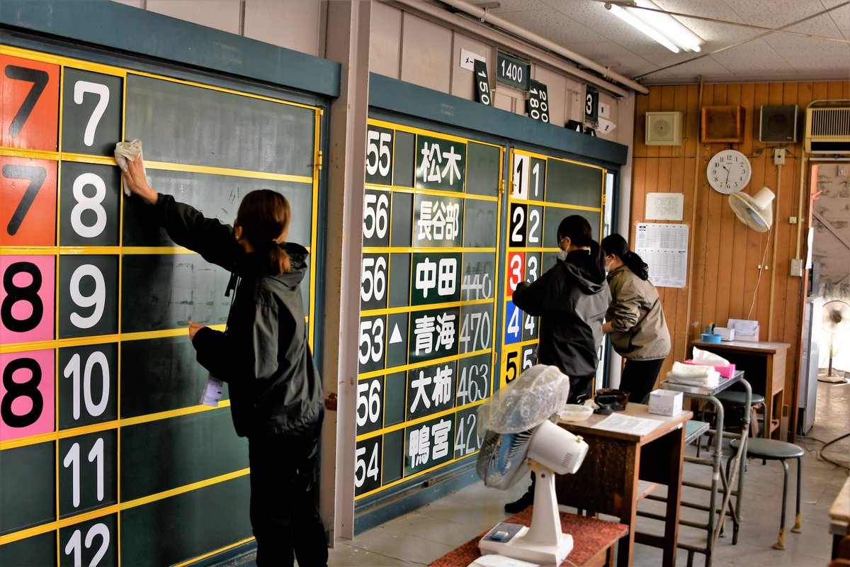 ①前のレースの馬名を水で濡れたタオルでふき取る(1枚目)