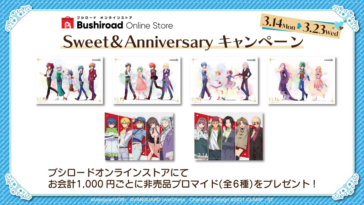 ブシロード オンラインストアにて、期間内に対象商品を含むお会計が税込1,000円ごとに「非売品ブロマイド(全6種)」をランダムで1枚プレゼント💝