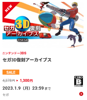 3DSのセール、もう最後だからなのかセガ、バンダイ、カプコン、スクエニと参戦してきてなかなかすごいラインナップになってる