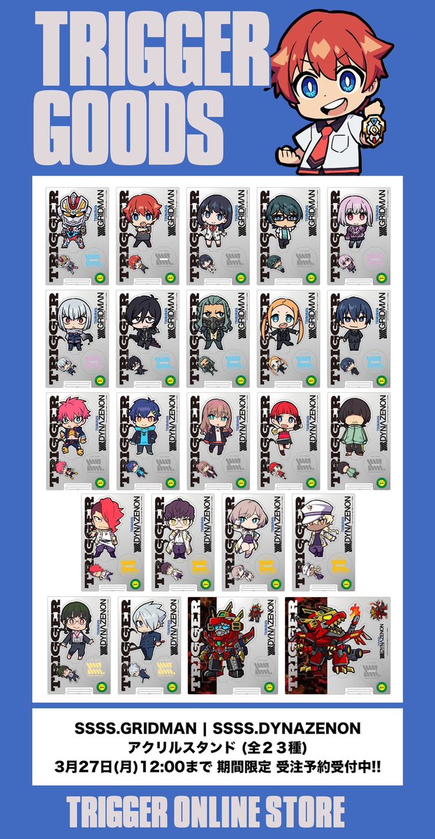 TVアニメ『SSSS.GRIDMAN』&『SSSS.DYNAZENON』SDキャラクターのアクリルスタンド(全23種) の受注予約がスタートしました😃