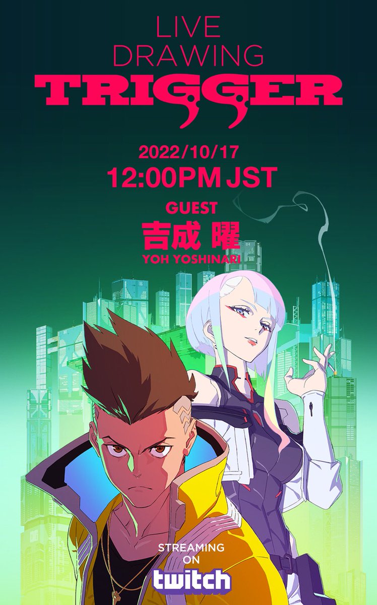 We have a date for our 20th live drawing stream! We will be inviting back Yoh Yoshinari, character designer for our latest series Cyberpunk: Edgerunners!