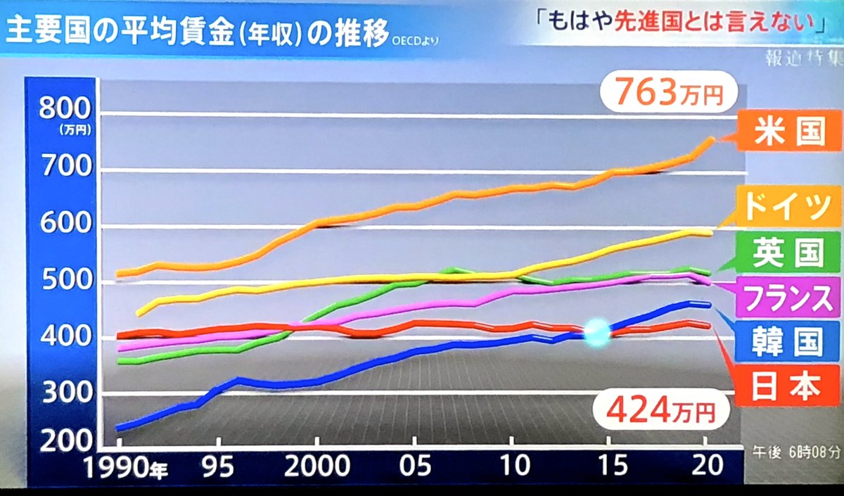 日本の平均賃金は伸びず今や韓国にも抜かれ、10年前米国と同じだったマックの価格は今や31位で購買力は米国の6割、アベノミクスの株高と円安は企業の成長戦略を停滞させ、今や後進国に成下がったわが国。