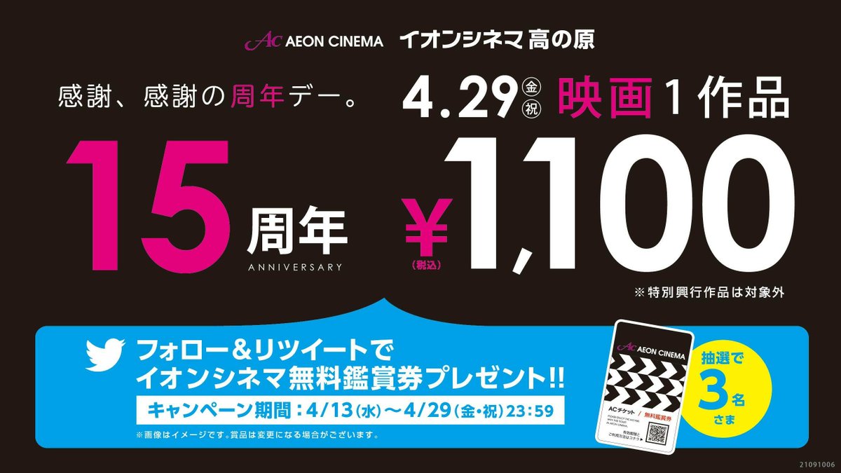 イオンシネマ高の原はおかげさまで開業1⃣5⃣周年🎉