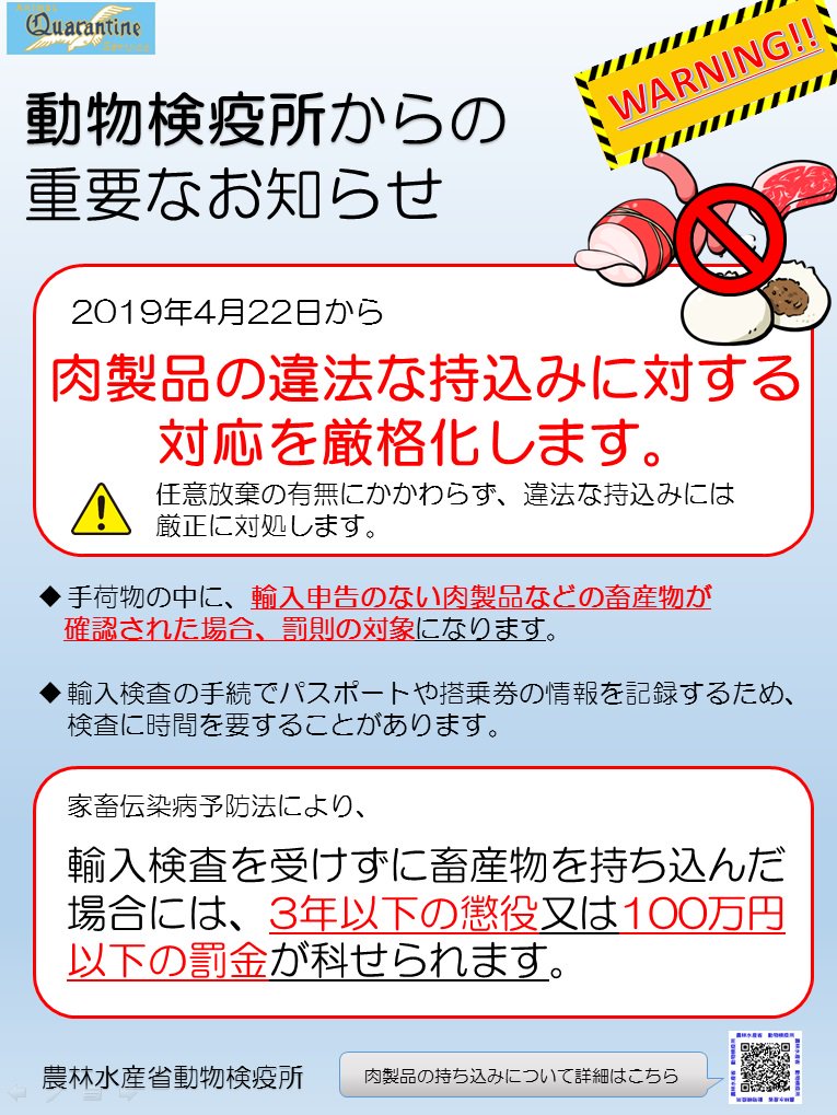 4/22~ 日本 海外からの肉製品の違法な持込みに対する対応を厳格化