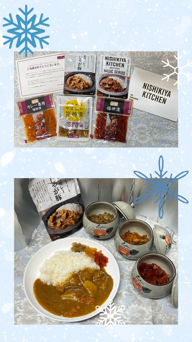 我が家ではカレーにお茶漬けパリパリや つぼ漬、赤しば漬を添えるほど⏬