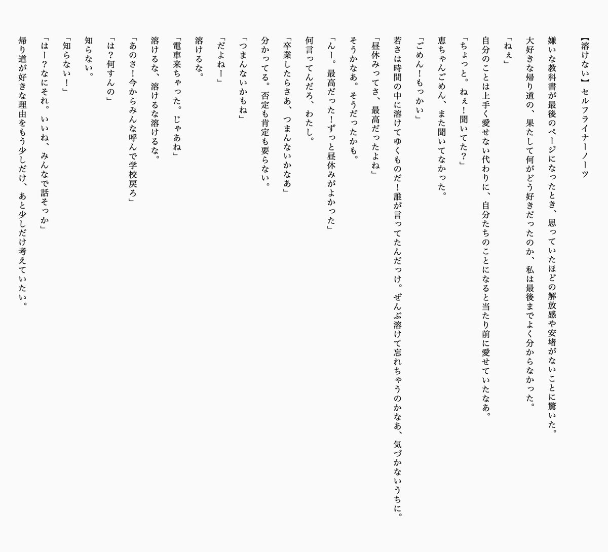 さかのぼるのはやめてね、ツイートも恋も。溜め過ぎるのはよくないよ、下書きも不満も。よく選んでから押してね、いいねも部屋も