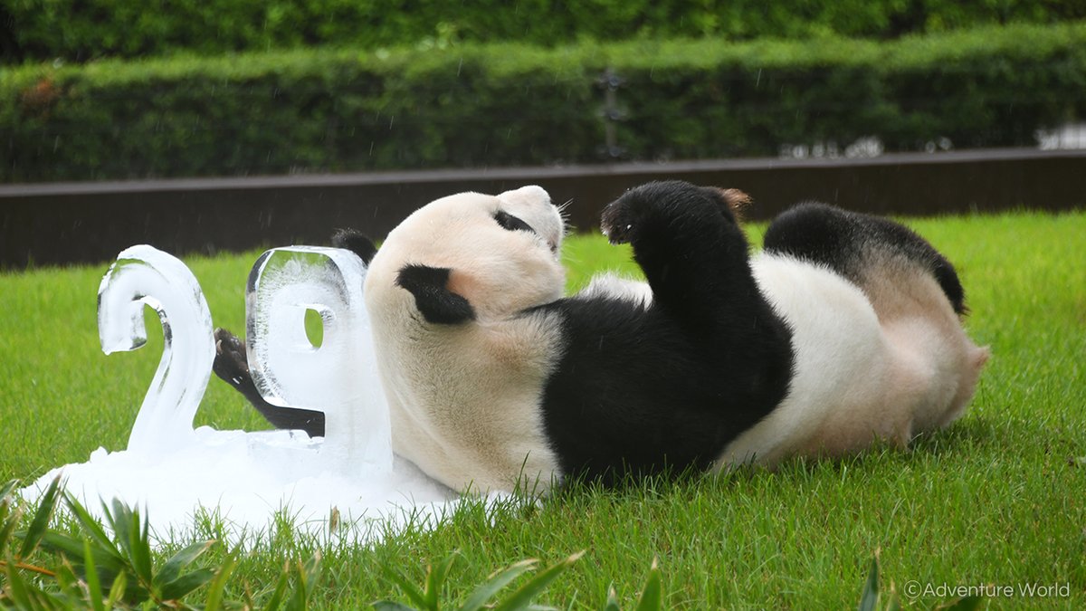 年齢を表す「28」の氷と飼育スタッフが28本の竹にひとつひとつ穴をあけて作った特製竹かざりをプレゼント♪ 詳しくはaws-s.com/topics/detail?…