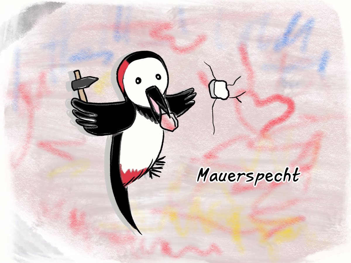 ベルリンの壁が崩壊したあとに生まれた言葉です。Mauerspechtを直訳すると「壁キツツキ」。壁をつっつく・・・つまり、崩壊後の壁を削り取っていた人々のことです。