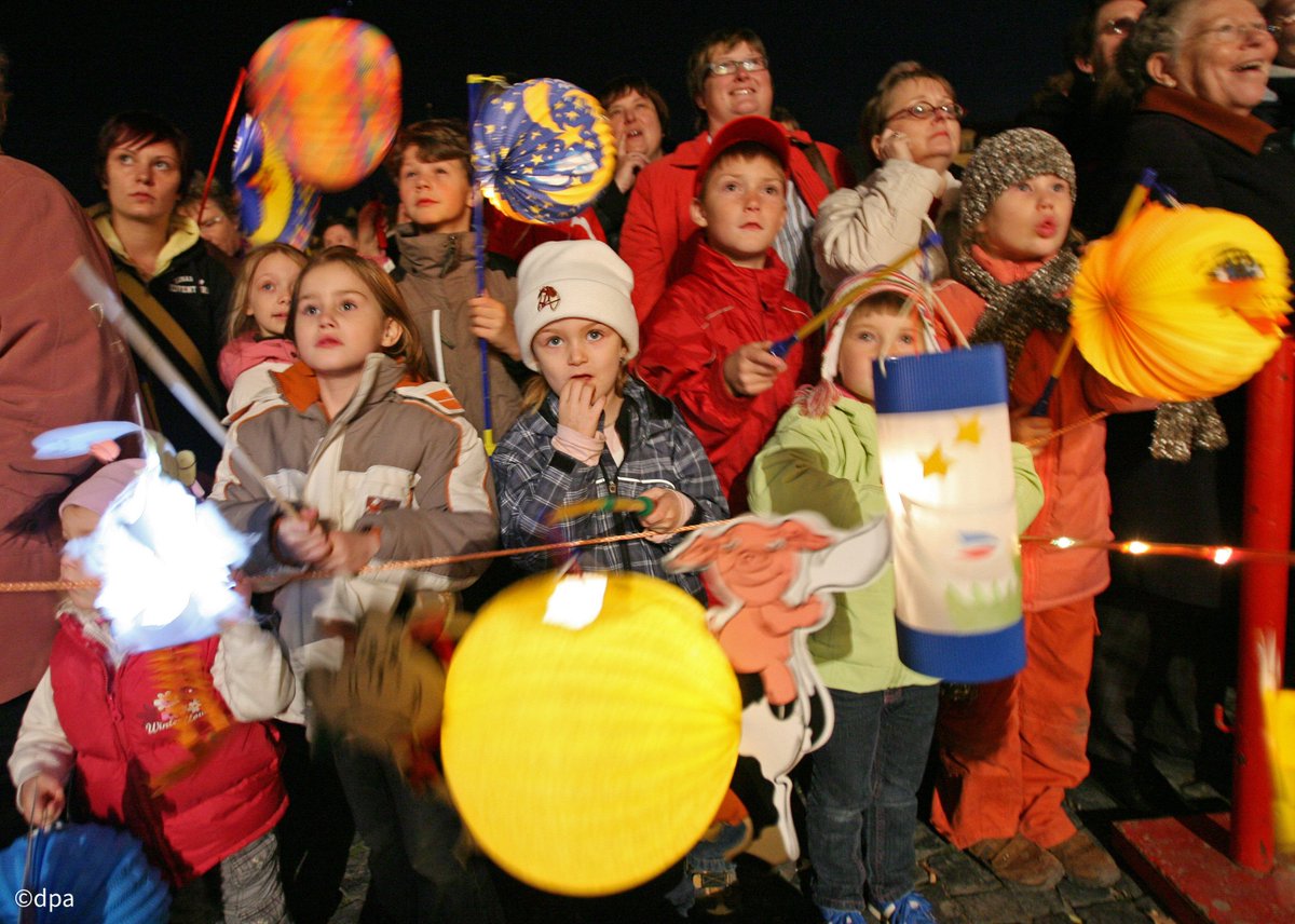 子どもたちは手作りのランタンを手に行列に参加し、近所を回って歌を唄い、お菓子をもらってにっこり😄