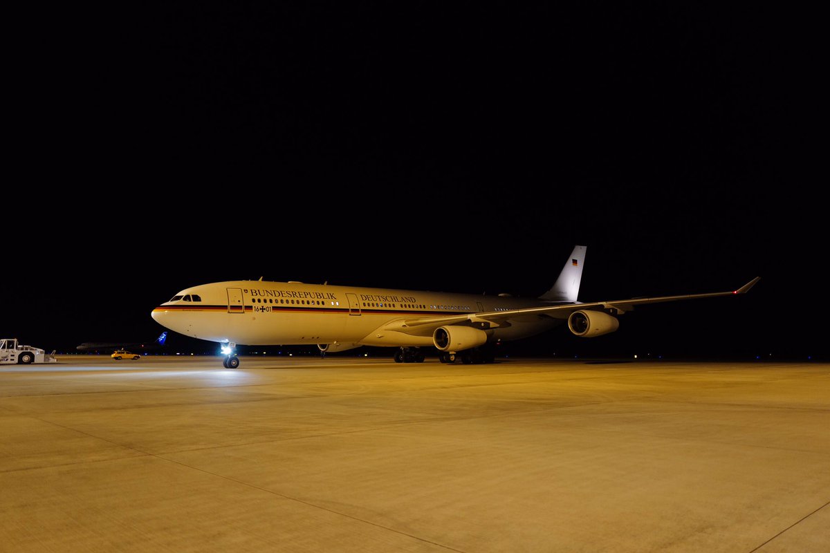 ハイコ・マース外務大臣が専用機で広島空港に来日し、レーペル次期大使とケーラー総領事がお迎えしました。