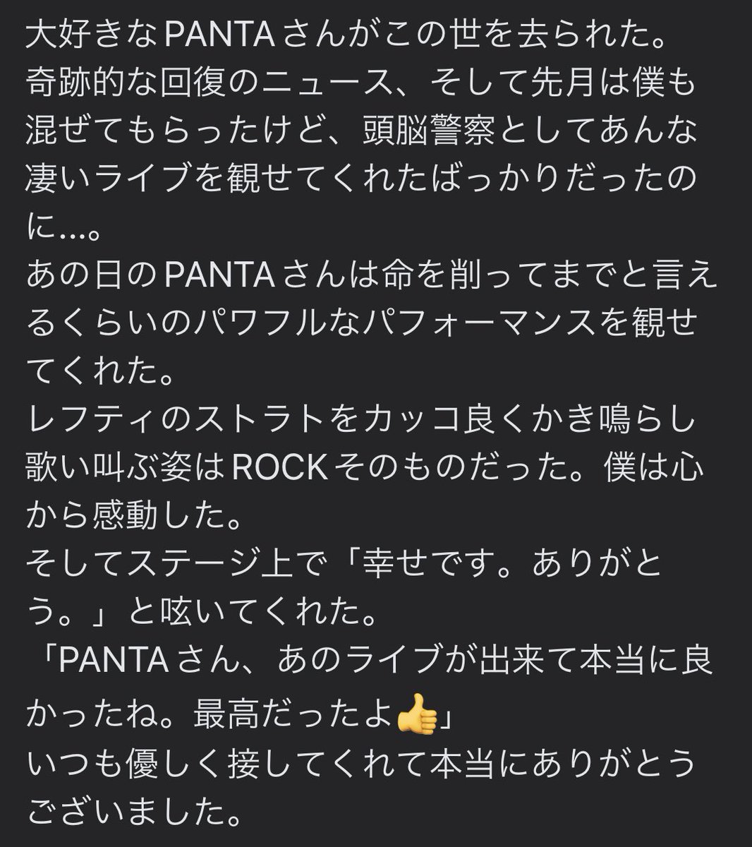 朝起きて大好きなこの曲のライブを観てみたら、僕らみんなにきちんと別れを告げて旅立っていくように見えた。R.I.P.