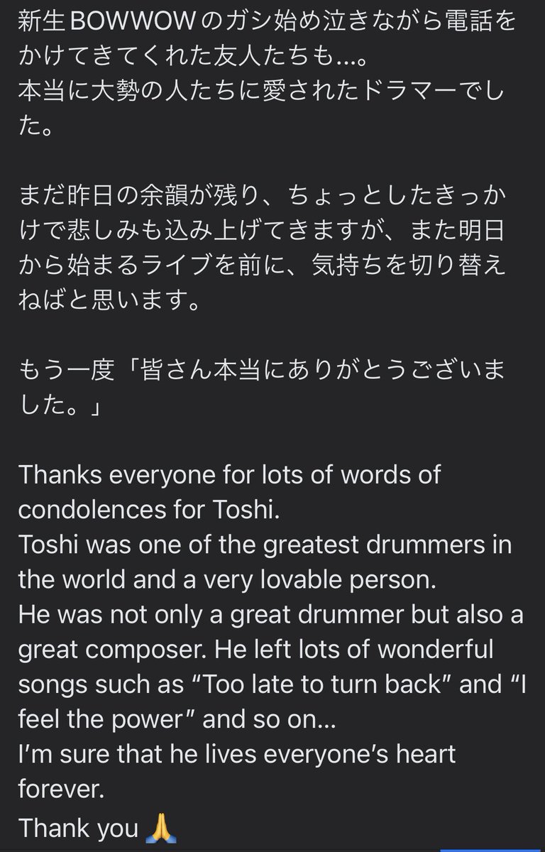そのひとつひとつに手を差し伸べていくことがどれだけ大変なことかも分かっています。出来る範囲で出来ることをして頂ければライブハウスのみならず音楽が生活の一部となっている皆さんやミュージシャン達も救われます。宜しくお願いします♪ twitter.com/KyojiTWJ/statu…