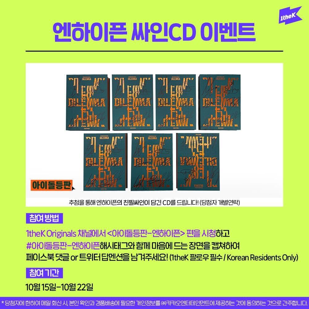 #아이돌등판_엔하이픈 영상을 보고 가장 마음에 드는 장면을 캡쳐하여 해시태그와 함께 보내주세요! 추첨하여 엔하이픈 싸인CD를 드립니다. (@1theK 팔로우😉/당첨자 개별연락)
