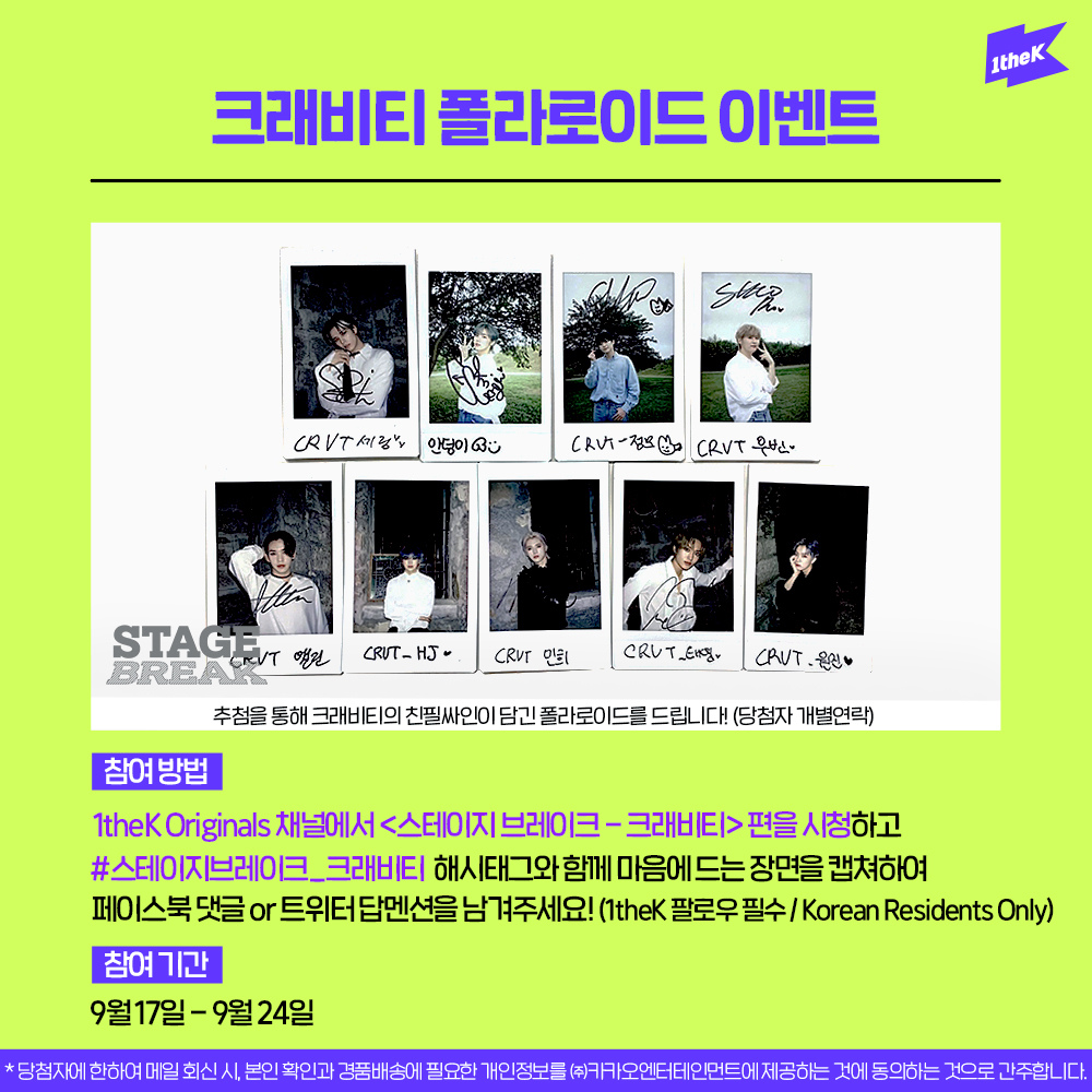 #스테이지브레이크_크래비티 영상을 보고 가장 마음에 드는 장면을 캡쳐하여 해시태그와 함께 보내주세요! 추첨하여 크래비티 싸인 폴라로이드를 드립니다. (@1theK 팔로우😉/당첨자 개별연락)