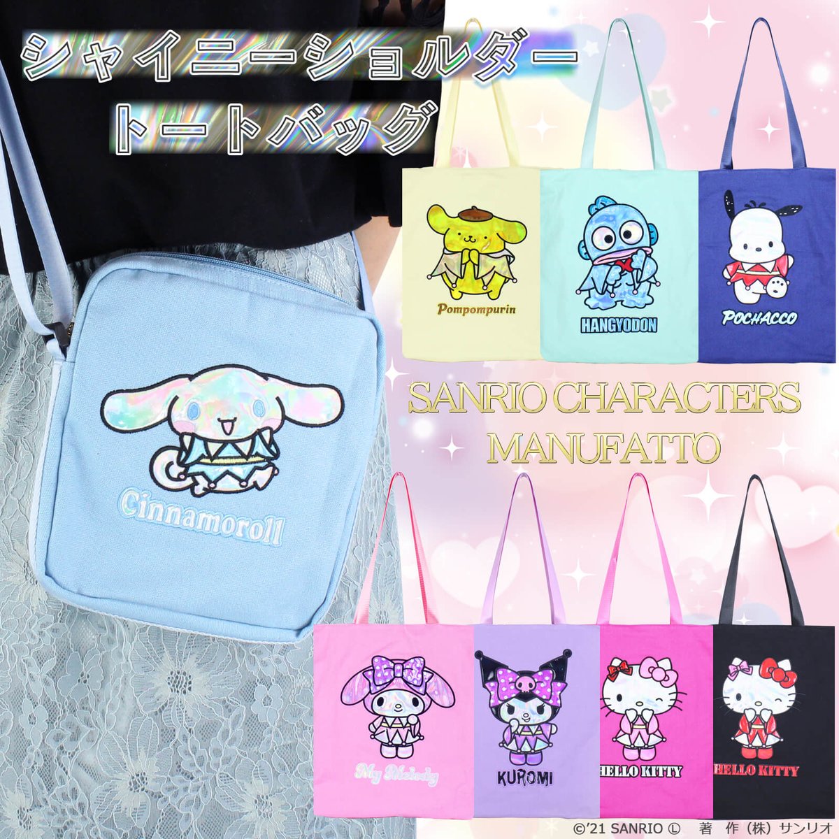 オーロラカラーがキラキラ輝く☆サンリオキャラクターズのシャイニーバッグが登場!ショルダーバッグはちょっとしたお出かけに♪トートバッグはいちご新聞も入る大きめサイズ!あなたの推しはどれ? sanrio.eng.mg/9227c