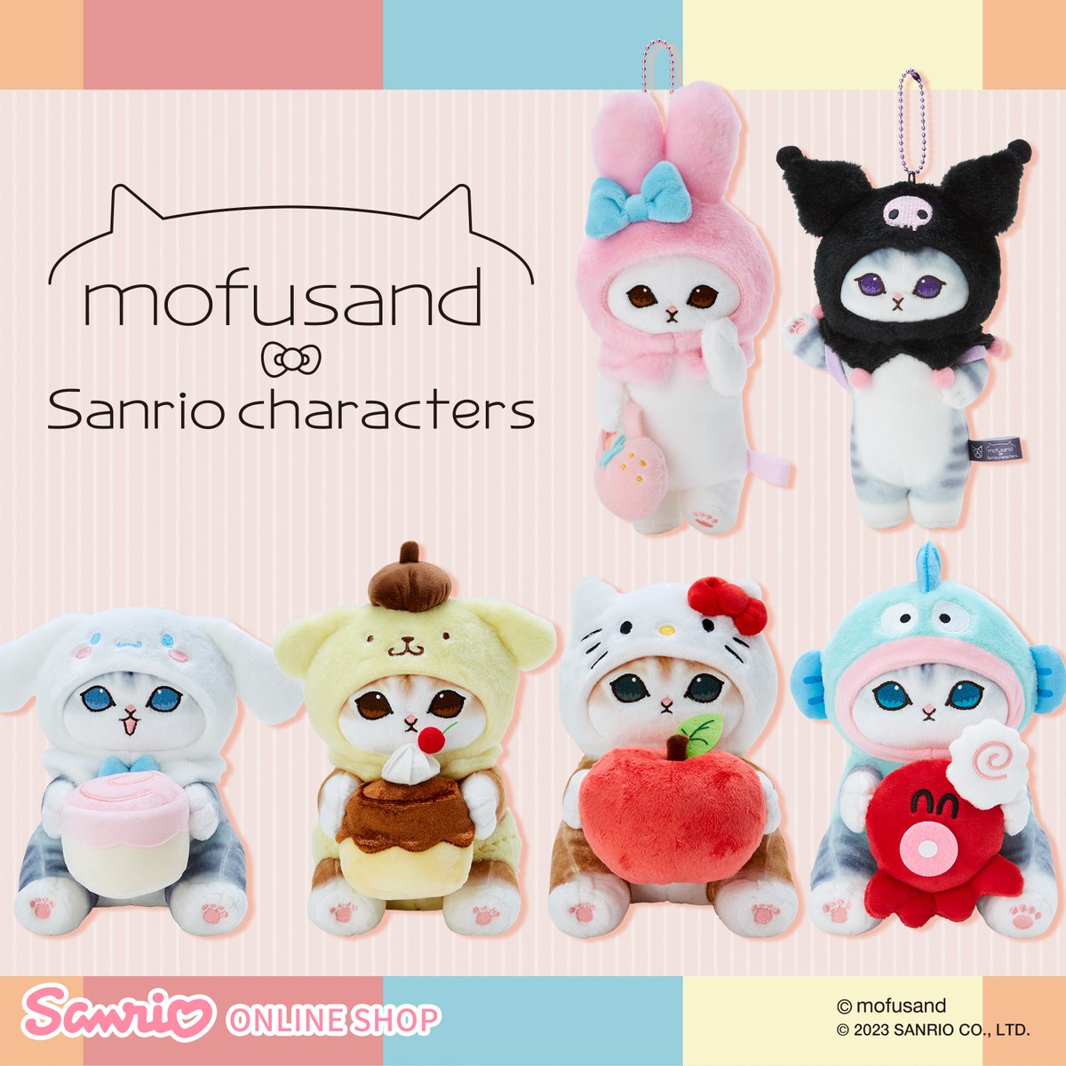 【サンリオオンラインショップ】mofusandとサンリオキャラクターズのコラボグッズが登場☆バッグやリュックに付けたくなるマスコットと、ちょこんとお座りポーズがかわいいぬいぐるみ♪チェックしてね! sanrio.eng.mg/a7ed8 #sanrioec