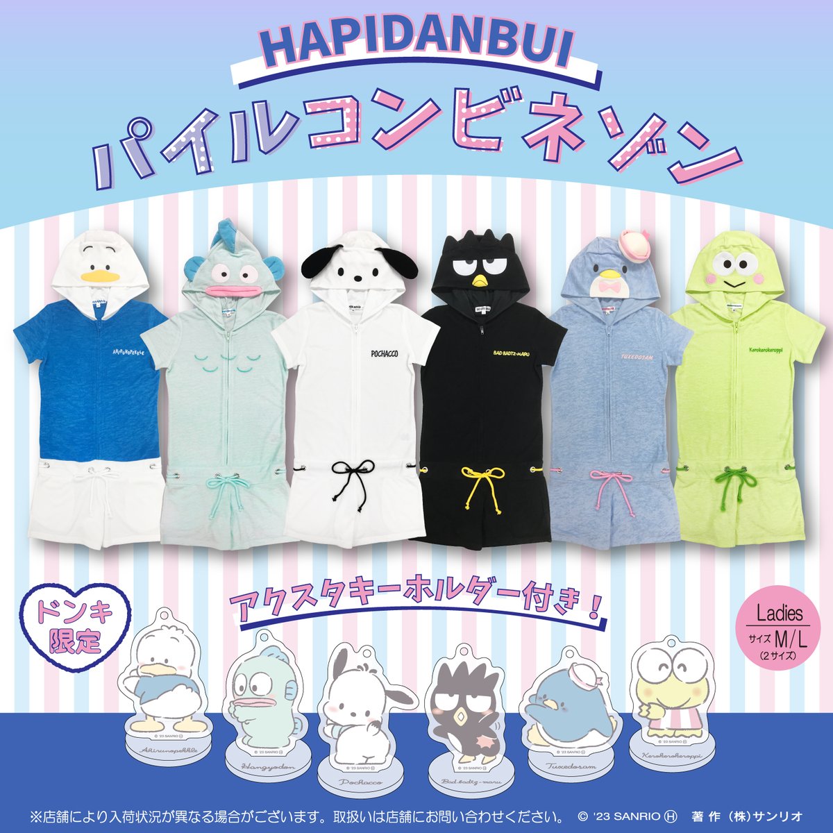 ドン・キホーテ限定♡サンリオキャラクターズとはぴだんぶいのパイルコンビネゾンが登場!オリジナルアクスタキーホルダー付きだよ♪ぜひGETしてね★※店舗により入荷状況が異なります。 sanrio.eng.mg/90e4b