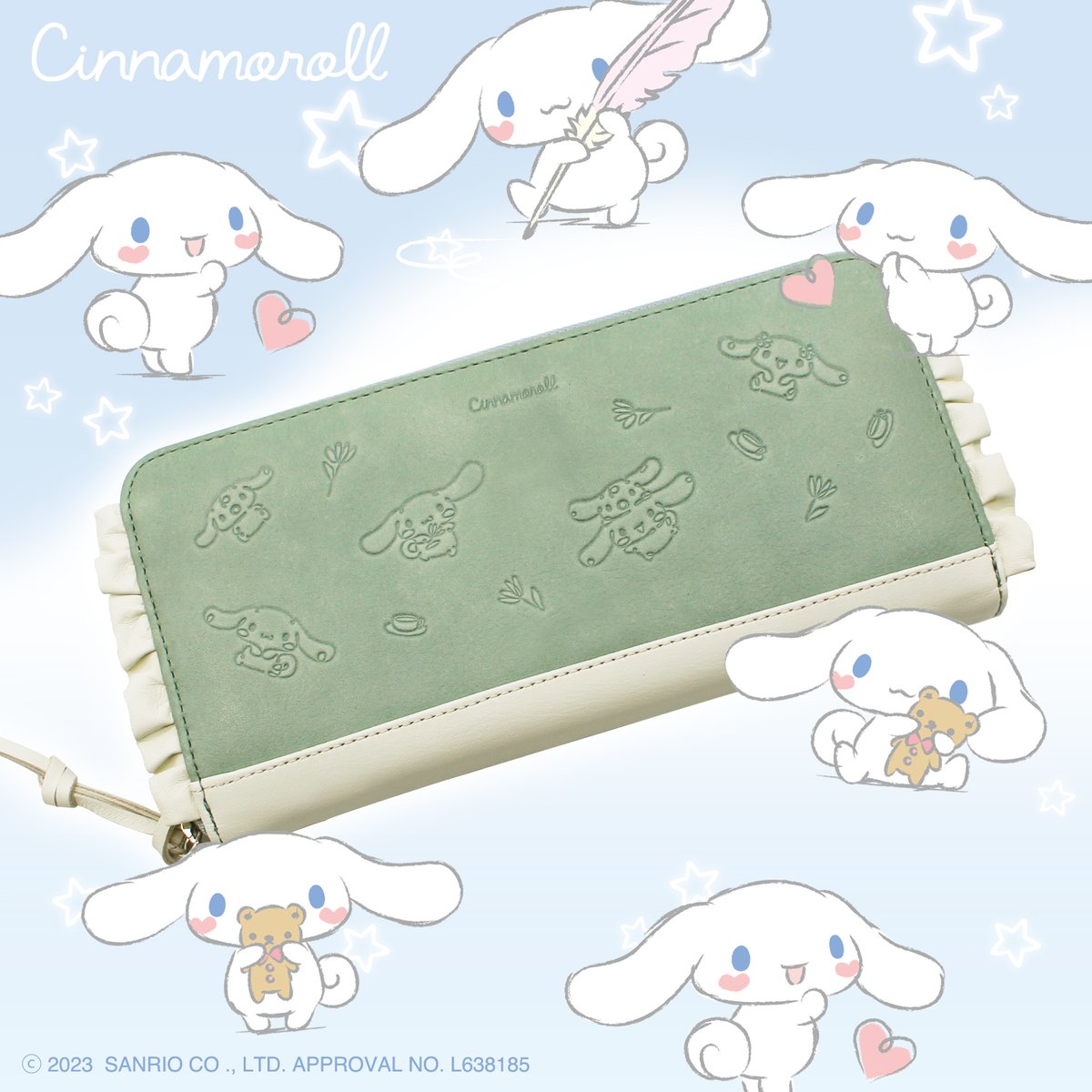 革小物専門店「VEOL」にシナモロールのファスナー長財布が登場!サイドのフリルとさりげなく型押しされたシナモン&お友だちがキュートだね♡すべて本革を使用しているから上品で大人も持ちやすいよ♪ sanrio.eng.mg/b7f05